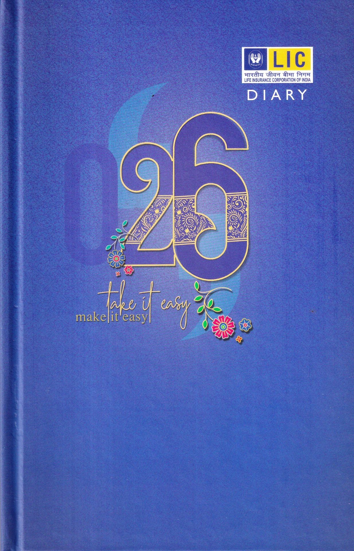 Premium LIC Executive Diary 2026 featuring a stylish and calming blue hard-bound cover with an elegant “26 – Take it easy” design.