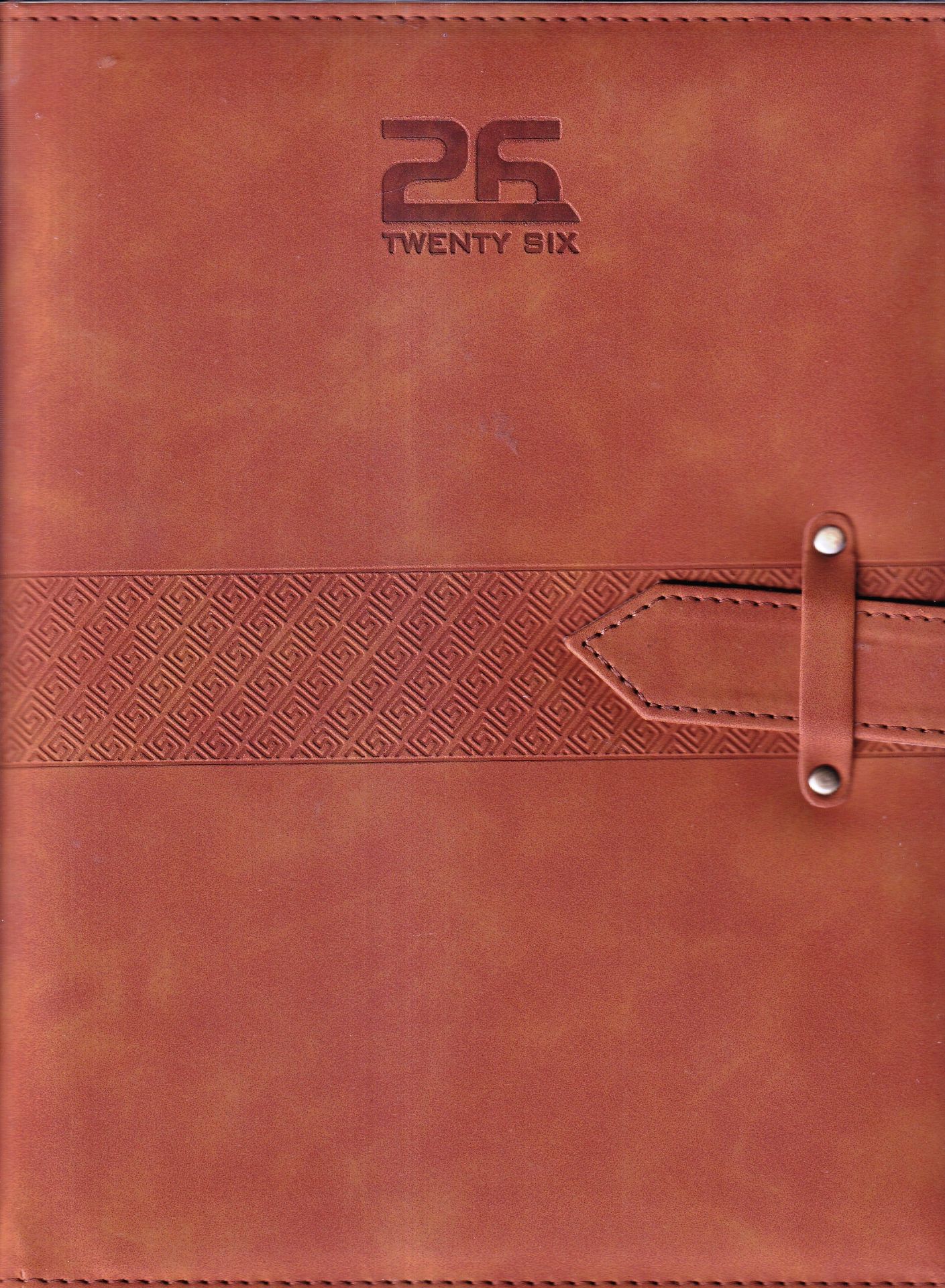 Crafted with high-quality Premium PU Leather cover featuring a rich textured finish for a refined and professional appearanceElegant embossed “26 – Twenty Six” branding adds a modern executive touchStylish patterned strap design enhances aesthetics while offering secure closureNeat edge stitching improves durability and provides a premium handcrafted lookSIZE – 24 × 18 CM, offering generous writing space while remaining compact and easy to carryHigh-quality inner pages suitable for smooth writing, daily notes, and professional planningHalf Sunday layout ensures a balanced and practical weekly planning formatComes with a built-in page mark ribbon for quick and easy page navigationFeatures a secure magnetic lock stripe to keep the diary neatly closed and protect inner pagesStrong binding ensures long-lasting performance throughout the yearIdeal for office executives, managers, entrepreneurs, and business professionalsPerfect for corporate branding, promotional gifting, and New Year gifting with a premium executive finish.
