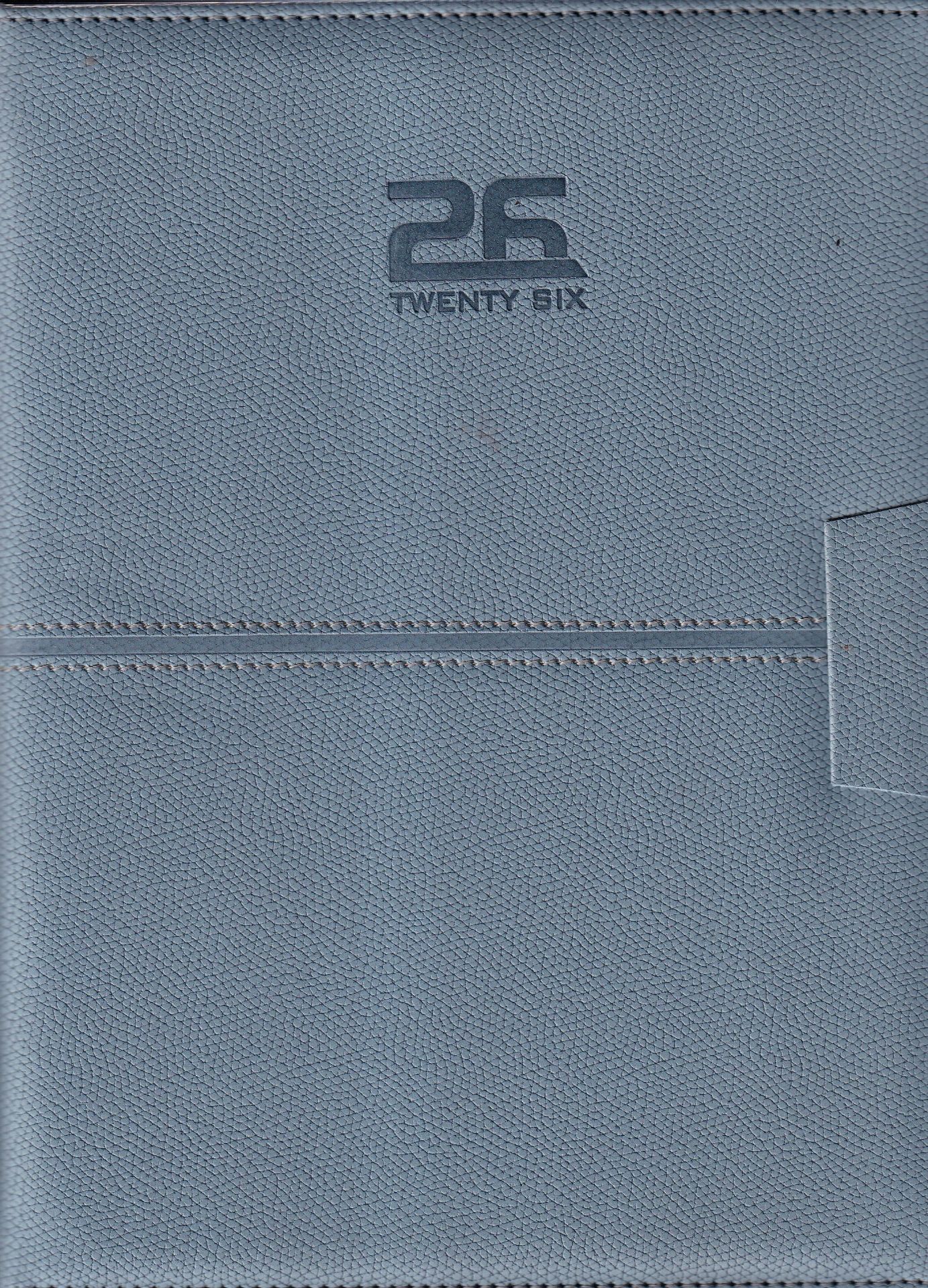 Crafted with high-quality Premium PU Leather cover featuring a fine textured finish for a modern and professional appearanceSubtle embossed “26 – Twenty Six” design adds a minimal yet stylish executive touchStrong and neat edge stitching enhances durability and gives a premium handcrafted feelSIZE – 24 × 18 CM, offering generous writing space while remaining compact and easy to carryHigh-quality inner pages suitable for smooth writing, daily planning, and record keepingHalf Sunday layout provides a balanced and practical format for weekly schedulingComes with a built-in page mark ribbon for quick and convenient page navigationSturdy binding ensures long-lasting use throughout the yearClean and professional design makes it ideal for office executives, managers, and business professionalsPerfect for corporate branding, promotional gifting, and New Year gifting with a refined executive appeal.