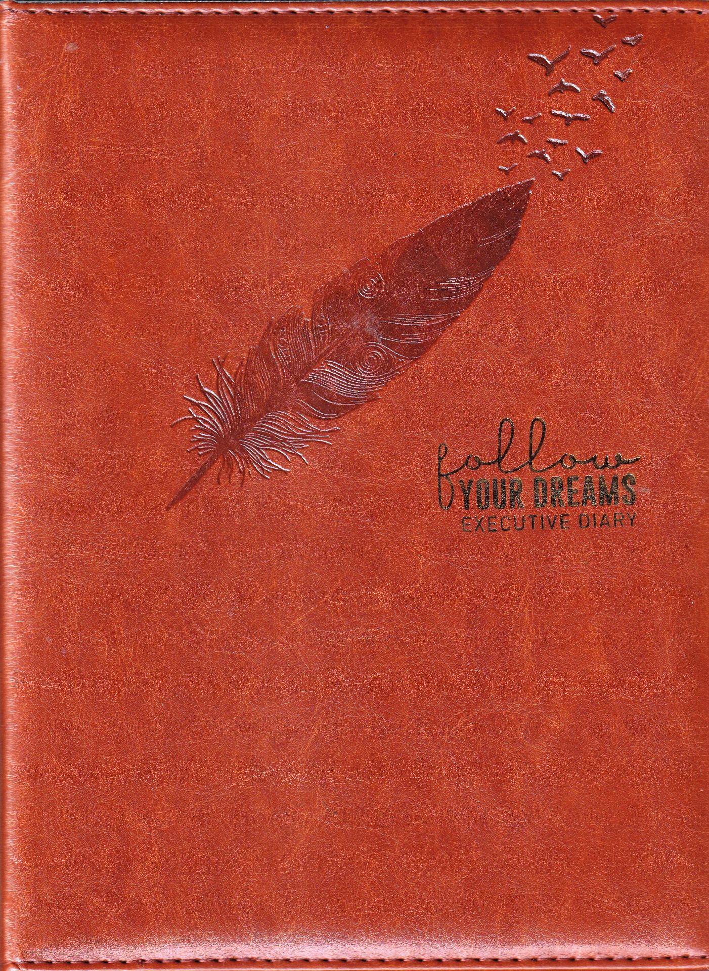 Crafted with high-quality Premium PU Leather cover featuring a rich textured finish for a luxurious and professional feelElegant embossed feather design on the cover symbolizes creativity, freedom, and inspirationMotivational text “Follow Your Dreams” adds a positive and encouraging touch for daily useNeat edge stitching enhances durability and gives a refined handcrafted appearanceSIZE – 24 × 18 CM, providing ample writing space while remaining compact and easy to carrySmooth, high-quality inner pages suitable for writing, planning, and note-takingHalf Sunday layout offers a practical and balanced weekly planning formatComes with a built-in page mark ribbon for quick and easy page navigationStrong binding ensures long-lasting use throughout the yearIdeal for office professionals, creatives, entrepreneurs, and studentsPerfect for corporate branding, motivational gifting, and New Year gifting with a premium executive appeal.